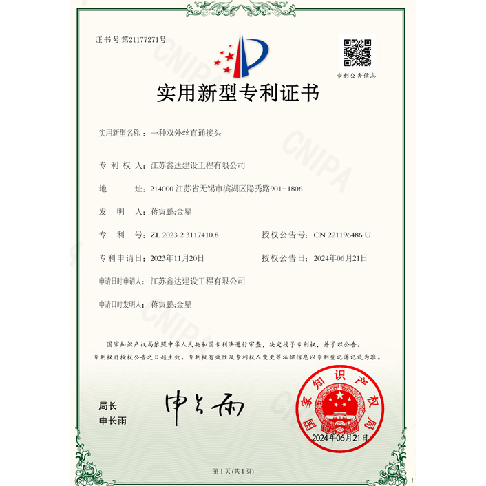 一種雙外絲直接通頭